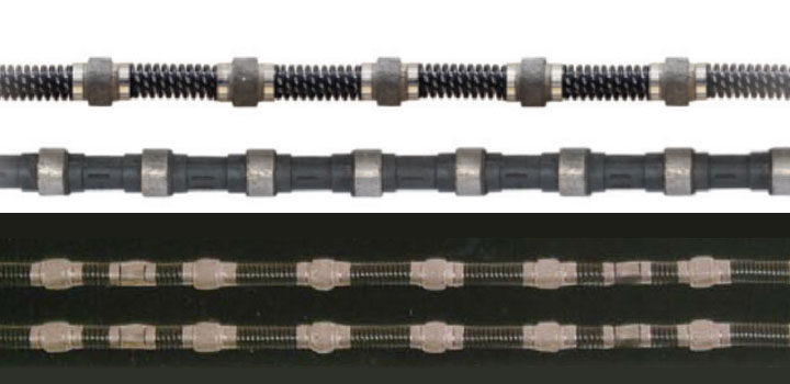 采用橡胶绳主要有如下优点:橡胶与钢绳有更好的结合力,黏结得更牢,更能承受恶劣工作中的冲击;橡胶耐温性好,可适应冷却水不足时的使用,譬如在水雾状况下的工作性能;柔韧性强,减少珠子使用中的偏磨,也更适应较小的曲率半径。